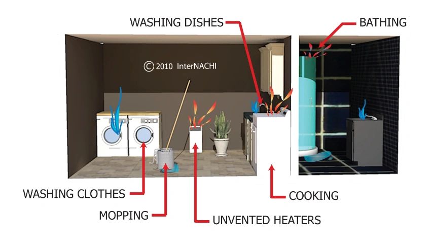 Moisture intrusion is a serious deal. It can come in any type of form from an obvious leak in the roof, or flashing missing. It can also come from a flood or overflowing bathtub or shower. The not-so-obvious areas around a home are underneath sinks and behind laundry areas. These areas hardly have anyone looking underneath or behind them for leaks. Or around fireplaces or too much humidity in the air. You can cause too much moisture by having a humidifier up too high, cooking or having a shower and not running exhaust fans. When moisture is present it may cause mold spores to begin to grow in areas you are not aware of. In these areas, it may not show up for months on end and in that time you are breathing mold spores that may feel like allergies. Long-term effects may be serious. Solving moisture problems and mold issues is often expensive and time-consuming.